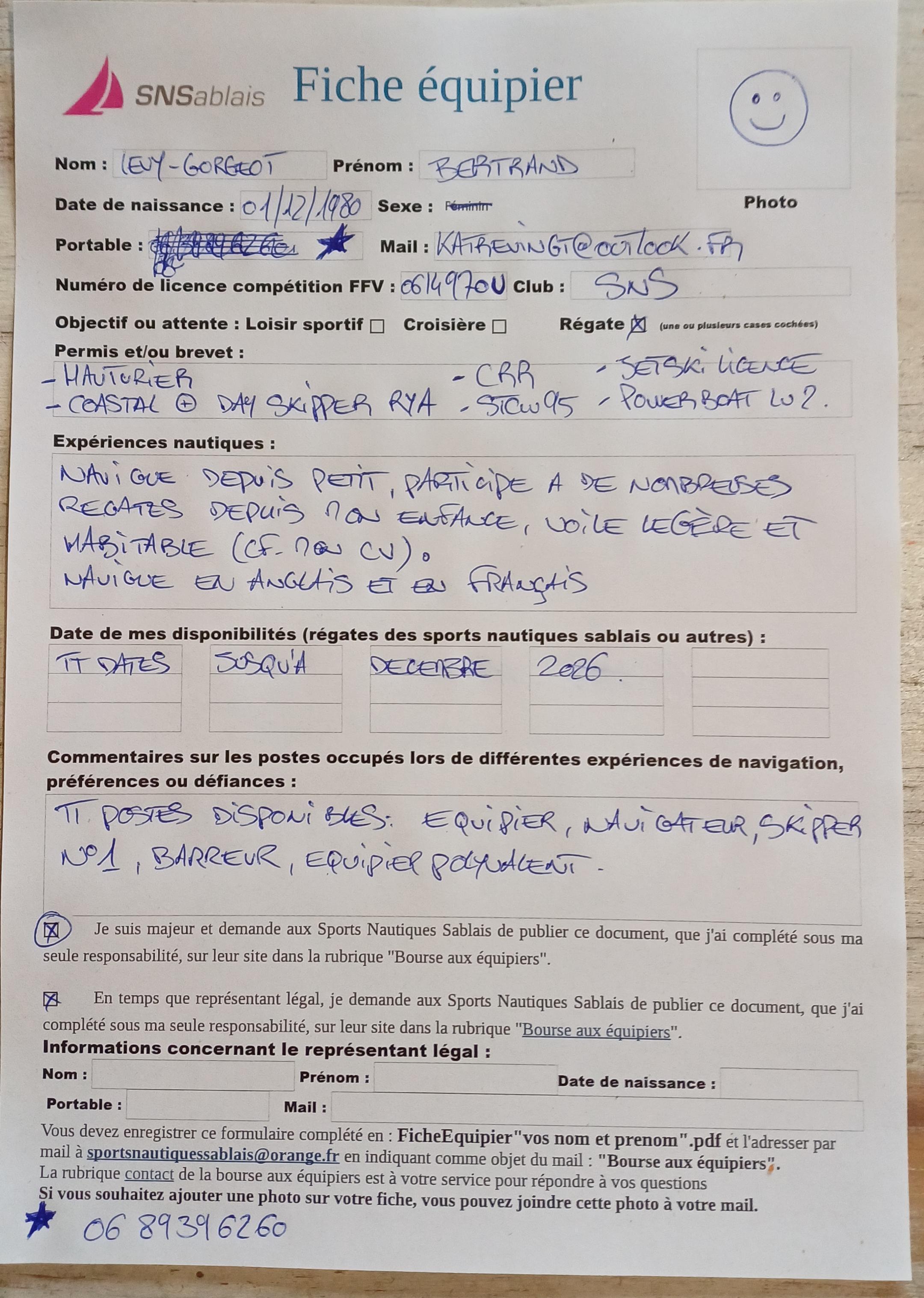 | Benoît ROTTELEUR | Équipier expérimenté en croisière et en régate | consulter la fiche |